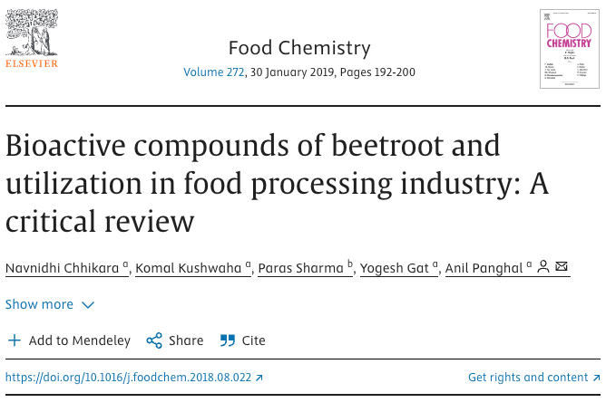 Artikel ini membincangkan tentang kompaun bioaktif dalam ubi bit dan penggunaannya dalam pemprosesan makanan, termasuk sebagai pewarna semula jadi dan bahan tambahan dalam pelbagai produk makanan seperti pes tomato, sup, sos, pencuci mulut, jem, jeli, gula-gula, dan bijirin sarapan.